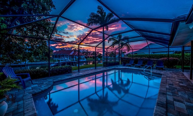 West Facing Elec Heated Pool, 2024 Tritoon rental, Walk/Bike to Bars&Restaurants | House in Cape Coral