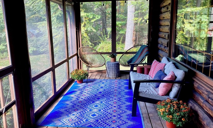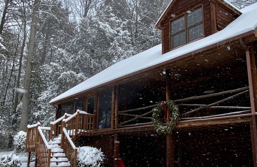 Rest and reconnect with family and friends at West Hill Cabin, a log home located in the Litchfield Hills of Connecticut, just 2 1/2 hours from NYC and Boston. The cabin is situated just off a private dirt road on an acre of land surrounded by woods which has access to West Hill Lake, a short walk through neighboring Brodie Park. The log cabin offers 3 bedrooms, 2 ½ bathrooms, an office, reading room, living room, open concept kitchen and dining area, and a great room with vaulted ceilings and wood burning stove. High-speed internet and one fully-equipped hot desk and additional desk upstairs make it perfect for remote working. Outdoor space includes a screened-in porch and rear deck with picnic table and grill.