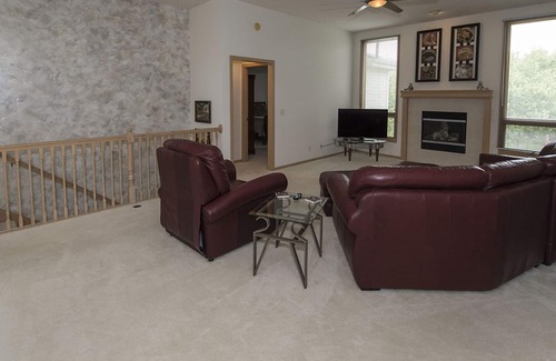 Our home is located in northwest Omaha's premier community conveniently located just north of dodge street. Custom built ranch on walkout lot and quite street. Main floor has dining area, eat-in kitchen, 2 king bedrooms 2 1/2 baths - master has jet tub. Laundry Room complete with washer and dryer, covered deck. Lower level has large rec room with kitchen and 3/4 bath, king bedroom and 2 queen bonus room walk out with patio. 3 car garage, so you can park your rental car inside if needed.