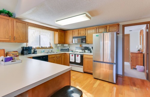 Take an Appalachian retreat at this spacious 4-bedroom, 3-bathroom vacation rental in Hedgesville! Nestled amidst the greens of The Woods Golf Course, this home is perfect for a golfing getaway or alpine adventure in West Virginia's Eastern Panhandle. After a day filled with hiking and sightseeing at Cacapon Resort State Park, return home to enjoy the beautiful surroundings while you barbecue on the deck or gather around for a game night in the cozy cabin-inspired living room.
