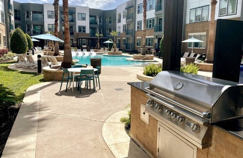 A Mid-century modern design apartment with two king beds and a separate bathroom. Pool view, close to the galleria and memorial city mall. Guests mostly end up extending their stay from the comfort and convenience of the location. It's 20 mins away from downtown, 10 min away from I-10. 15 min away from the energy corridor. On Westheimer and 25 minutes to the airport. The best part is you can walk down to the grocery store and bakery. The apartment is loaded with essentials for a long-term stay.