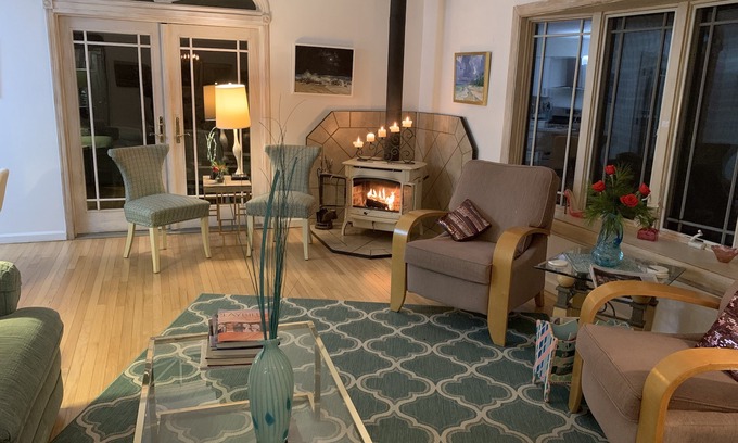 Charming 3 br/2ba- Available Now-9/7/25 Or SEPT 7-May 15, '26. Prefer a minimum 4-5 month rental. 75 miles from NYC - perfect for long get-away weekends OR live there full-time. Beautifully furnished 3 bedroom, 2/bath. CENTRAL A/C, recent total renovated modern white kitchen, 2 newly tiled bathrooms, wood burning fireplace, eat-on screened porch overlooking garden filled with hydrangea bushes, etc. Two blocks to park (tennis, basketball court, and ball field). 7 minutes by car to beaches, 5 min to town, restaurants, movies, shopping. 3 miles to Hampton Synagogue. Decorated, charming house in shades of white and aqua with touches of pink. Raised ceiling and beams in living room, bay windows and sanded floors. Wood-burning enamel stove . Lovely screened porch overlooking private garden with bluestone path. Contemporary furniture, comfortable beds. In a quiet, unpretentious area of West Hampton. Charming front, side, and back yard - with picnic tables, barbeque, etc. Easy drive to South Hampton, East Hampton, Riverhead, (Tanger Mall), North Fork.