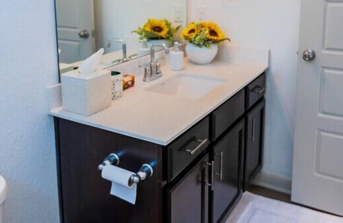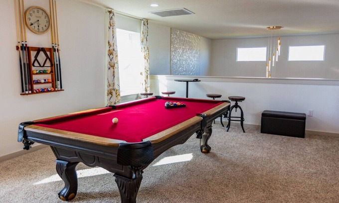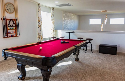Our modern two-story home situated in suburban Austin is the perfect family vacation spot. Our home includes 4 bedrooms, 3 bathrooms and a loft with a pool table. The home also features a huge 75-inch television and large backyard. Feel free to make it a movie night or family game night. We have board games and cards. Our home is just 18 miles from Austin-Bergstrom Airport and Downtown Austin is even closer. For our business travelers looking for a home office we offer high speed internet.