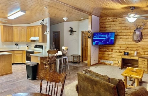 Wexford Hollow is one of our our Largest Lodges…. with 6 bedrooms, 3 baths Lodge, Large Swimming pool, Hot Tub, geothermal heating system, wood burning stove, walk out basement, Pool Table, covered porch, and a large yard. We are hoping to have a pool installed by suThe cabin is located just off the Great River Road between Harpers Ferry and Lansing Iowa. It is nestled in a valley overlooking Wexford Creek with great Trout Fishing and the famous Historic Wexford Catholic Church.