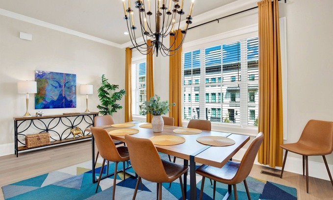 Welcome to Wharfside Whimsy, your colorful retreat in Savannah’s Eastern Wharf. This 3-bedroom, 3.5-bath townhome (1,894 sq ft) is quietly tucked away yet perfectly located — just a short stroll to the Savannah river, Eastern Wharf’s lively green spaces, restaurants, and concerts, and walkable to all of historic downtown.