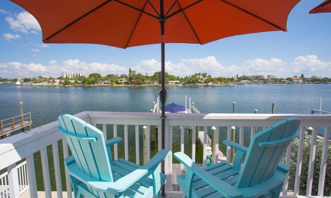 Watch the dolphins and manatees go by as you sip coffee on your private deck overlooking the Intercostal Waterway (Boca Ciega Bay). This newly updated 2 bedroom unit on the 2nd floor (top floor) has plenty of room for the family. French doors lead to your large private deck with seating for 8. (7) Seven nite minimum.