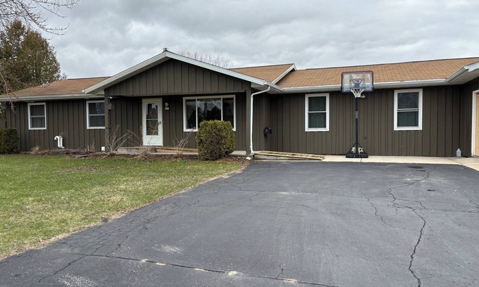 Stay comfortably in Algoma at this 5-bedroom house. The bedrooms feature 2 queen beds, 2 full beds, and 1 bunk bed, ensuring a nice and serene night's sleep for all guests. One large living room to enjoy sporting events. A second living room to enjoy visiting and warmth from the gas fireplace. A porch off the kitchen for the kiddos to enjoy a dvd, coloring, or a fun game night. With amenities like heating, WiFi, and a jetted bathtub, your stay here will be nothing short of phenomenal. We have plenty of visitor info for you to find local fun during your stay. The home is on an acre lot. The backyard includes two decks one for enjoying a relaxing cup of coffee in the morning, a second for enjoying the afternoon sun and catching up with friends, the paver patio is set up for a delicious night of grilling. Basketball hoop in front driveway. Adequate parking for all guests, boat parking along side of garage, large driveway to accommodate several vehicles. Without having to park on street. Come stay and play in Algoma.