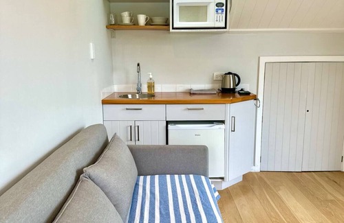 The separate studio apartment offers on site privacy for a couple. It includes a queen sized bed, an ensuite bathroom with shower, a light and bright lounge with a small kitchenette with sink, mini fridge, microwave and toaster. The lounge opens onto it's own private balcony with breathtaking views of the Bay.