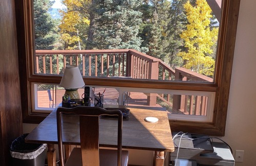 Over 2000 sq.’ of floor space located on a circular 1 acre of beautiful mountain land surrounding the house. Enjoy our shaded main deck and master desk sunsets where impressive views of the West Elk mountains await. Ample parking. Snowmobile access-only in winter- bring yours or rent one locally. Full-service bar & restaurant 2 miles away often with live music during summer & fall weekend nights at the Arrowhead lodge. Nearly every imaginable cooking device is ready for you in the kitchen pantry. Enjoy the use of Direct TV and high-speed internet or even use home as an office complete with printer and fax. Concierge services available. NO PETS please. Interior home cameras have been covered for guests for 100% privacy in solitude amidst aspens and fir trees at the top of the Rockies. Come experience the Rocky Mountains at our home In the Arrowhead HOA high above the town of Cimarron in the middle of Colorado's western slope. Winter access can be provided by contacting the host!