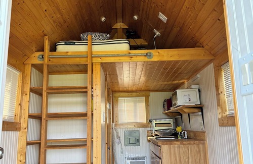 Enjoy getting away from the city in a 2022 Jayco camper with all the modern amenities as well as a cute tiny home next to the river. Additional RV site available if requested in advance. There are two container homes on the property that are not available for rental since these are for a long-term tenant who oversees the property. Feel free to also enjoy a evening campfire, ride on the zipline, or just sit under the evening lights to enjoy the fresh air.