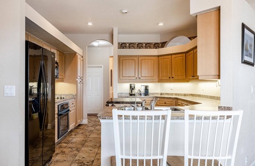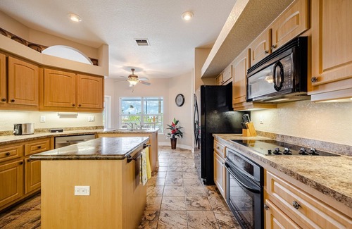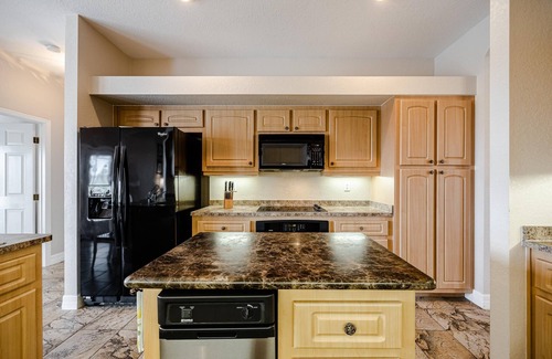Fully Equipped Kitchen: Cook like a chef in the spacious kitchen with high-end appliances, an island counter, and all the essentials for family meals.