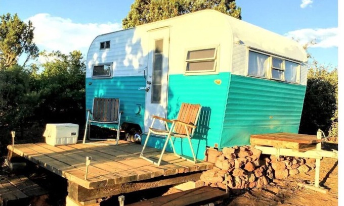 Private camper with deck, indoor and outdoor dining tables. Inside table can be folded down into a bed, extra linens in the closet. Native American artifacts are in the prolific throughout the area as this entire region was inhabited by Indians in the past. Ruins of scattered throughout the canyons below.