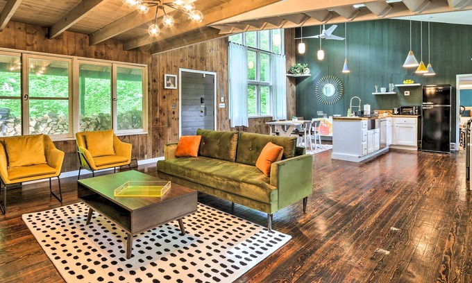 Give city life a break and try country living for a bit when you stay at this 2-bedroom, 1-bathroom vacation rental cottage in Washington, Connecticut. The home features a whimsical exterior with a modern interior and boasts 1,700 square feet of living space, a fully equipped kitchen, and a fire pit - great for stargazing. Explore nature parks or hiking trails before visiting a multitude of nearby farms to pick up fresh ingredients for a home-cooked meal that the whole group can enjoy.