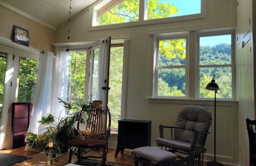 Perched on a quiet hillside and cradled by the forest, the Wildwood Studio is a light-filled sanctuary designed for rest, reflection, and rekindling your creative spark. Part of the award-winning Snug Hollow Bed & Breakfast—celebrating 25 years of heartfelt hospitality on 300 private acres—this cabin is a favorite for couples, close friends, and solo travelers seeking a soulful Appalachian retreat.