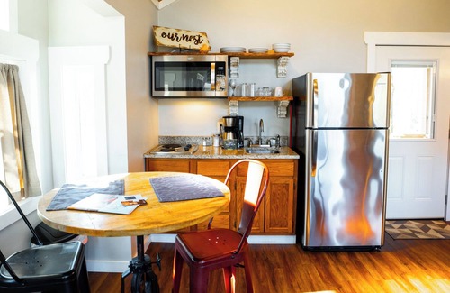 Surrounded by the Ouachita Mountains, come and enjoy a little piece of heaven in the canopy of the trees. You'll love the view, the peaceful whispering of nature, a time to unwind and totally unplug. Each treehouse is spaced from 75 to 100 yards apart so you'll have the privacy you're after. A small kitchen (stove, no oven) is provided for that romantic meal or just enjoy a snack out on the porch swing. A gas grill is provided. Take time for yourself in the hot tub located on the deck or enjoy the ambiance of an all season fireplace. Whippoorwill Treehouse's interior has beautiful antiques, an incredible king size bed and you'll love the view from the hot tub or porch swing.