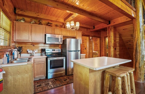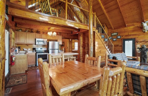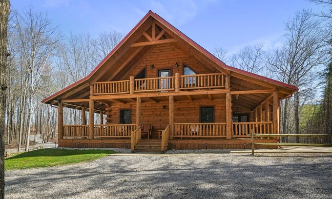 Whispering Oaks is tucked away on an impressive 100 acres wooded lot! This mini lodge provides space for up to 7 guests! There are 2 private bedrooms and 1 bed in the loft that features a private walk out to the balcony! Stay busy in the game room- pool table, foosball table, and games for your entertainment! Explore the property's secluded hiking trails and relax in the hot tub! Visit Whispering Oaks and book now! Must be 30 years or older to rent! 4WD/AWD Recommended!