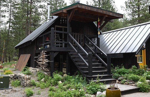- The trail down to the river and the stairs to the deck and in the cabin are steep and may not be easily navigable by people with injuries or the physically infirm. The interior stairs are without backing and not appropriate for small children. Infants and young toddlers should be kept away from the woodstove, woodstove pipes, and the vertical log railing on the upper level of the cabin.