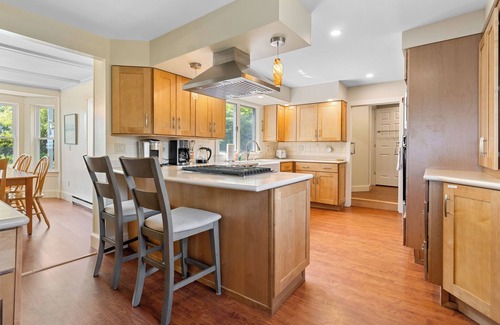 Welcome to White Caps a beloved oceanfront home nestled along the scenic shores of Port Clyde Harbor. For over 40 years this enchanting cottage has been the perfect Maine getaway for families offering a peaceful retreat where time slows down and memories are made. Just a short walk from the iconic Marshall Point Lighthouse famously featured in Forrest Gump White Caps embodies the essence of a traditional Maine vacation with its rustic charm expansive ocean views and welcoming atmosphere. n nA Tranquil Setting with Rich History nArriving at White Caps you’ll find yourself on a serene private road surrounded by multi-generational family homes each one with its own story to tell. The cottage exudes a cozy and inviting atmosphere filled with antique furnishings and a timeless charm that transports you to a simpler more relaxed time. It’s the perfect blend of rustic elegance and comfort designed for both relaxation and celebration of the natural beauty that surrounds it. n nBreathtaking Views & Prime Location nThe house is ideally positioned to offer stunning views of the Atlantic Ocean with wall-to-wall windows that bring the beauty of the coastline indoors. From the rocky shoreline just outside watch boats drift by and the tides roll in as you soak in the spectacular views. A short stroll will bring you to Marshall Point Lighthouse where you can enjoy the iconic coastal scenery that inspired one of Hollywood’s most famous films. Whether you’re savoring a morning coffee on the deck or enjoying a sunset dinner White Caps offers a front-row seat to some of Maine’s most breathtaking vistas. n nSpacious Comfortable Living nStep inside and discover an open and inviting space designed to maximize the panoramic ocean views. The living room and sunroom provide ample seating and the perfect vantage points to watch the boats come and go from the harbor. Whether you’re unwinding after a day of coastal exploration or curled up with a good book these spaces offer the ultimate in comfort and relaxation. The well-equipped kitchen makes meal prep easy while the dining room invites you to gather together share meals and enjoy the company of family and friends. n nComfortable Bedrooms for Restful Nights nOn the second floor you’ll find the primary bedroom with a queen bed plus two additional bedrooms: one with a double bed and another with two twin beds. There's also a cozy den with a futon for additional sleeping space or a quiet retreat for reading or relaxation. The cottage is designed to accommodate families of all sizes offering the perfect mix of privacy and togetherness. n nSummer Fun in the Bunkhouse nFor extra space in the warmer months enjoy the small bunkhouse located on the property. With two twin beds it’s the perfect retreat for older kids or young adults who want a bit of independence while staying close to the main house. n nExtra Space for Larger Families nFor those seeking a little more room Little White Caps a separate apartment above the garage is available for rent. This charming addition provides extra living space for larger families or groups offering a perfect balance of privacy and proximity to the main house. n nEndless Activities & Local Charm nWhether you’re exploring the iconic lighthouse strolling along the coast or enjoying a quiet day at the house White Caps offers something for everyone. The local area is rich in charm and history with nearby trails shops art galleries and seafood restaurants to discover. You’re also just a short drive from nearby beaches making it easy to enjoy sunbathing shell collecting and all-day coastal fun. n nBook your stay at White Caps today and experience the magic of this beloved oceanfront retreat. Whether you’re savoring sunsets from the deck exploring the beautiful Maine coastline or simply relaxing in the comfort of this charming cottage your next family vacation awaits at White Caps – where the tradition of Maine vacations continues to live on.