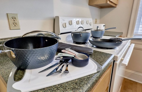 While you're here, you can enjoy all the comforts of home and more, including a full-sized refrigerator/freezer and an oven, as well as a stovetop and a dishwasher. Other amenities include laundry facilities, a freezer, towels, and kitchenware and utensils.