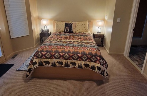 This level also features a comfortable master bedroom suite with a Queen bed and its own full bath and additional attached side room with a set of bunkbeds.