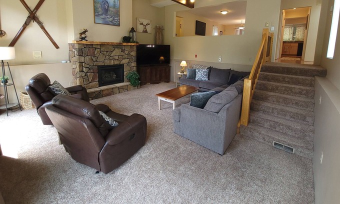 Gather the whole family to have meals together in the large dining room table, relax and play games in the most comfortable living room you will ever experience with a fire in the propane fireplace. Enjoy the outdoors on the back deck with propane grill and fire pit or on the large front deck.