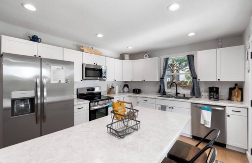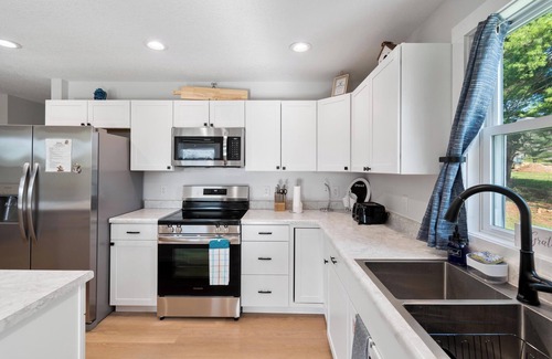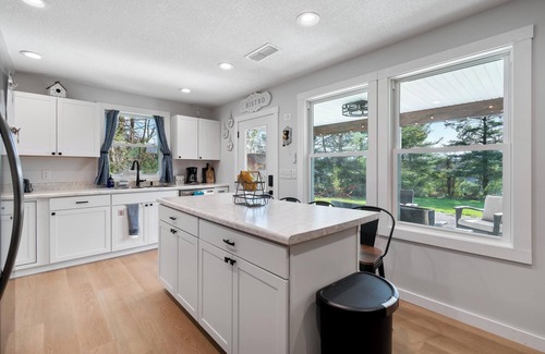 Welcome to our brand new 3-bedroom, 2 full bathroom cottage located in Somerset/Burnside, KY. It is located on a dead-end street which means no car traffic to worry about. There is plenty of parking on the nice wide flat gravel driveway that is about 85-100 ft long so plenty of room for multiple boats and vehicles. The kitchen is fully stocked with all the utensils and pots and pans you should ever need. There is also a drip coffee maker along with regular and decaf coffee. The kitchen opens into an informal dining area and a living room. With the dining table and kitchen bar, there is plenty of seating for sitting down to enjoy meals with family and friends. There is also a covered porch which is a perfect place to sit out in the morning and enjoy your coffee. Attached to the porch is a patio that includes some additional seating along with a propane grill. There are cornhole boards in the laundry room for your use.