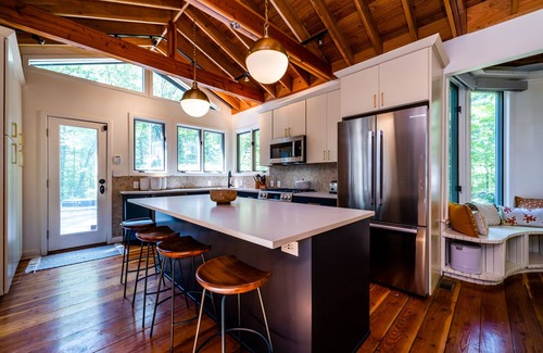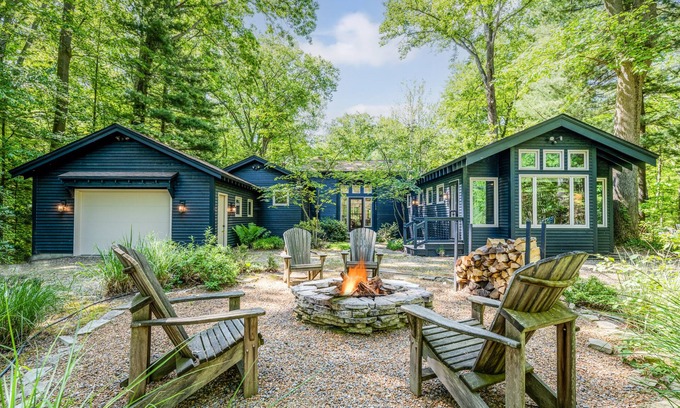 White Oak Retreat, a decorated home in a secluded setting. Located near several beach accesses in the Harbert and Sawyer area. This fun destination is located on a wooded lot offering a private pool and hot tub overlooking the forest. luxurious accommodations for 10, with all the most asked for amenities, including dining for 10, professional appliances, fully stocked kitchen, wine captain, fireplaces, great room, game room, Sonos sound system, large screen smart television, 3 luxury baths, comfortable furniture, accessories, bedding and linens. On the pool side, there is new outdoor furniture, a large grill, and a large screened in outdoor living room and dining area. This area is famous for peaceful woodland landscapes and great local restaurants and attractions. Freshly remodeled with fresh linens, ready to deliver summer fun, White Oak Retreat.