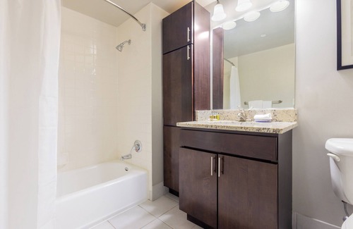 This one-bedroom apartment is carefully curated with comfort in mind and features an elegant interior with vinyl wood plank flooring, a full bathroom with granite countertops, ample closet space, an in-unit washer/dryer, a fully equipped designer kitchen and distinctive contemporary furnishings. The Building amenities include a 24-hour concierge, a 24-hour fitness center, two landscaped courtyards with gas grills and fire pits and a pet-friendly environment, creating the perfect environment for four-legged friends. All beds provided are fitted with plush linen sheets and pillows. All Furnished Quarters apartments include 24/7 guest service. Pets are allowed in select apartments and are subject to a $500 non-refundable pet sanitation fee for one pet, $750 for two pets. Additional charges and size/breed restrictions may apply and vary by building. All pets must be approved by Furnished Quarters. Please let us know ahead of booking if you plan on traveling with a pet.