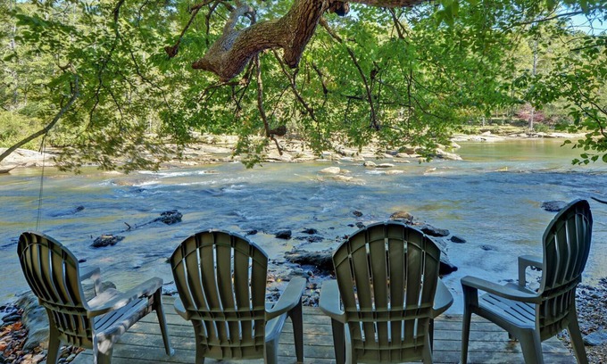 Discover the perfect retreat in our two-story duplex cabin that’s designed for the ultimate getaway. With spacious accommodations, top-notch amenities, and breathtaking surroundings. Experience Luxury: Fully equipped kitchen, a cozy living room, hot tub, firepits, grill & chill areas. Outdoor Bliss: Just 400 ft away, the Chattahoochee River invites you to fish, kayak, or simply unwind by the water’s edge. LOWER LEVEL ONLY — my elderly mom lives in the upper level of the soundproof duplex.
