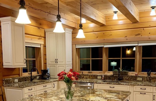 Our home sleeps 8 people with three bedrooms. Our master suite is upstairs facing the lake with large windows in front of the king sized bed. The master suite also features a walk-in closet, large bathroom with double sinks, walk-in shower, and large soaking tub. The second bedroom has a queen bed and is facing the lake on the main floor with a large bathroom across the hall. Main floor bathroom has large soaking tub and walk in shower. Our third bedroom has two twin built in beds and is on the second floor. This bedroom is facing south and has a view of Lake Superior.
