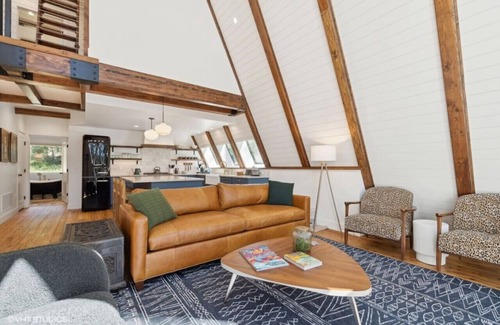 Escape to our brand-new, high-end A-frame cabin nestled on 5 private wooded acres, perfect for a peaceful and luxurious retreat. This stunning design combines modern amenities with rustic charm, offering the ultimate getaway for families, friends, or small groups.