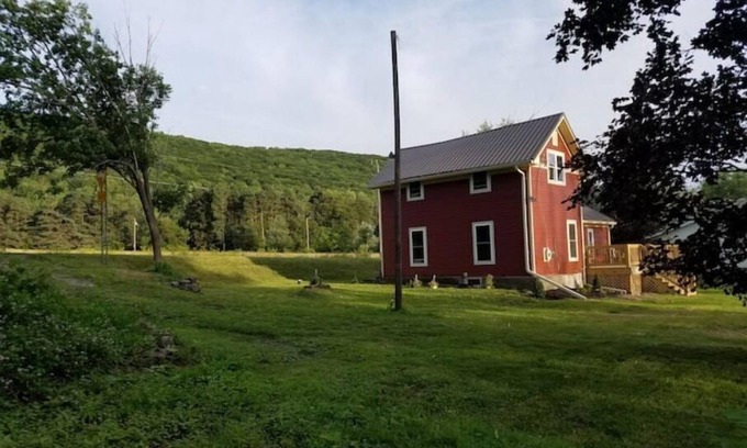Our home is located on Rte 414 10 miles to Corning or Watkins Glen. The beautiful back yard allows for a campfire (wood ), sunbathing and playing games. Explore the creek bed that leads to a stocked trout stream. Visit the goats at the farm up the road.