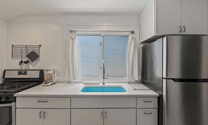 Inside this whole home(duplex with both the upper & lower unit combined), you'll find a blend of modern style and comfort, featuring an updated kitchen and bathroom complete with stainless steel appliances, sleek quartz countertops, a luxurious rainfall showerhead. Relax in comfort with two comfy queen beds, thoughtfully designed for a restful night’s sleep, and enjoy the added convenience of the additional queen sofa bed, perfect for accommodating larger groups.