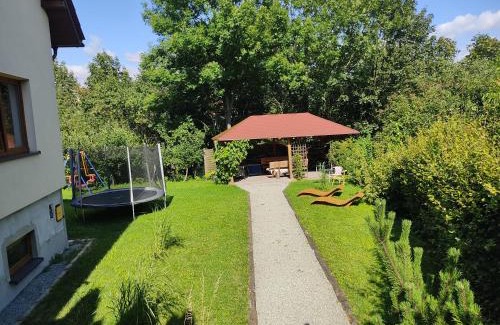 Providing mountain views, Wiśniowy Sad in Kudowa-Zdrój offers accommodations, a garden, and barbecue facilities. There's a private entrance at the homestay for the convenience of those who stay. There's a sun terrace and guests can access free Wifi and free private parking. At the homestay, all units are fitted with a wardrobe, a flat-screen TV, a private bathroom, bed linen, and towels. All rooms are fitted with a kettle, while selected rooms include a fully equipped kitchenette with a toaster, a fridge, and a stovetop. At the homestay, all units are allergy-free. For guests with children, the homestay provides an indoor play area and outdoor play equipment. Ski storage space is available on-site and skiing can be enjoyed close to Wiśniowy Sad. Kudowa Zdrój Train Station is a 7-minute walk from the accommodation, while Errant Rocks is 6.9 miles away.