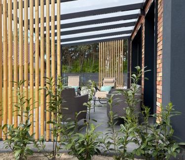 Featuring garden views, Widać Wydmy in Łeba features accommodations, a garden, and barbecue facilities. This property offers a private pool, free Wifi, and free private parking. On clear days, guests can head outside to enjoy the vacation home's outdoor fireplace, or simply kick back and relax. Featuring a terrace, the units offer air conditioning and have a flat-screen TV and a private bathroom with hot tub and a hair dryer. A dishwasher, a fridge, and stovetop are also available, as well as a coffee machine and a kettle. At the vacation home, every unit comes with a seating area. The vacation home has a picnic area where you can spend the day outdoors. Leba Railway Station is 3.3 miles from the vacation home, while Teutonic Castle in Lębork is 18 miles from the property. Gdańsk Lech Wałęsa Airport is 55 miles away.