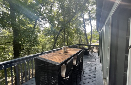 Romantic cabin with a big porch to BBQ , furnished sunroom and chimney .best views in the area , 3 beds ,2 full baths and amazing jacuzzi in the house for 4, full equipped kitchen. Smart Tv with all the apps , gated community and near to everything in poconos