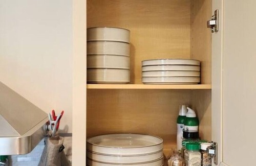 Kitchen: Keurig Pod coffee pot, toaster, dishwasher, measuring cups and spoons, spatula, can opener, cooking spoons, large frying pan with lid, cookie sheet, serving spoons, two large saucepans with lids, coffee mugs, cutting board, wine/beer opener, colander, Chef knives, dish soap, dishwasher soap, paper towels, sponge/dishcloth, dinner plates, bowls, water glasses, salad plates, silverware, wine glasses