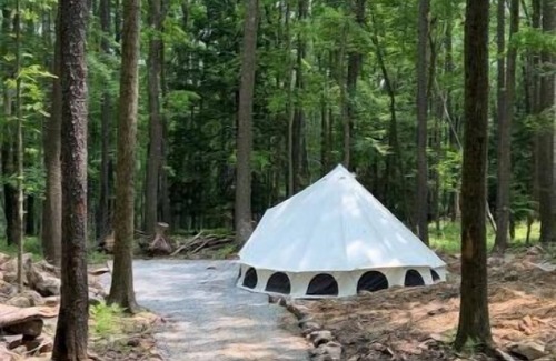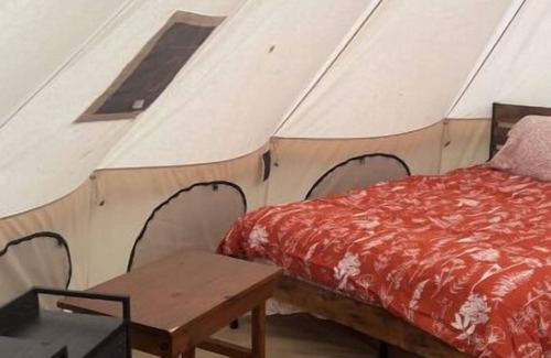 Monarch is one of three bell tents at Wild Garden Glamping in the amazing Cook Forest State Park area. This bell tent features two queen beds with memory foam copper cooling mattresses. The color scheme suggests the orange and black of one of our favorite pollinators, the monarch butterfly! Come bring your family to this luxurious camping experience and explore Cook Forest from a place of style! Be sure to check out our wildflower gardens as well!