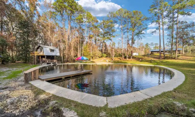 Peaceful, Rustic & Charming. The Grist Mill at Camp Seminole Springs will take you back in time when life was simpler. Spend a romantic evening on the porch overlooking the spring. Let the cool runnings of .the Water Wheel and the waterfall lull you to sleep. Unit has a half bath. Shower and WIFI located in the Great Lodge. Your stay Includes access to the Great Lodge. WIFI AVAILABE IN LODGE ONLY