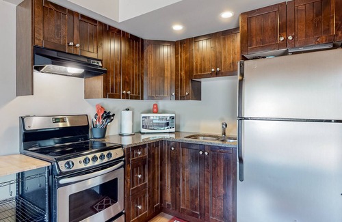 Get away from it all while reconnecting with friends and family at this Lac Le Jeune Wilderness Resort cabin. Just minutes from its namesake lake, this waterfront property showcases scenic year-round beauty in the heart of British Columbia. Blending rustic charm and contemporary comfort, this classic log cabin features a one-bedroom-plus-loft layout with all the essentials of home including a full kitchen, baseboard heating, and complimentary internet access. Enjoy the outdoors with coffee or cocktails on the private deck and after the day's adventures, unwind at home with some casual entertainment the TV. The shared on-site washer/dryer adds convenience during your stay.