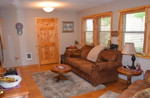 Our cabin is a well maintained home away from home, with a fireplace, full kitchen, comfortable sleeping accommodations, plenty of parking for your toys, VCR/DVD, and is a non-smoking rental.