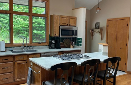 The fully updated and outfitted kitchen includes everything to cook your own gourmet meals π or head out to one of Canaan's great restaurants. All appliances are updated including a gas stove top and Bosch ultra quiet dishwasher. The open floor plan with vaulted ceilings includes a large kitchen fully open to the dining and living rooms. The large dining table seats 8 with room at the counter for additional people.