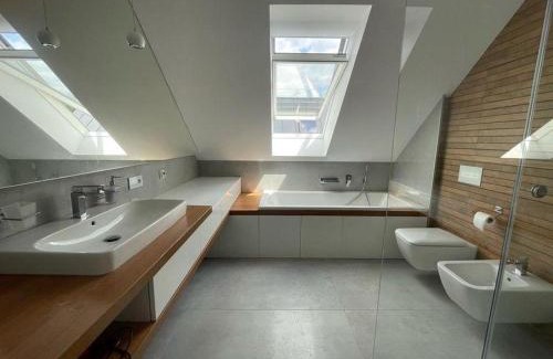 Providing a garden, Willa Źródlana features accommodations in Kowary. This property offers access to a balcony, free private parking, and free Wifi. Outdoor seating is also available at the villa. Featuring a terrace and mountain views, the spacious villa includes 4 bedrooms, a living room, flat-screen TV, an equipped kitchen, and 2 bathrooms with a bidet and a bath. Towels and bed linen are available in the villa. There's also a seating area and a fireplace. Ski storage space is available on-site and skiing can be enjoyed close to Willa Źródlana. Western City is 3.1 miles from the accommodation, while Wang Church is 6.8 miles from the property. Copernicus Wrocław Airport is 65 miles away.