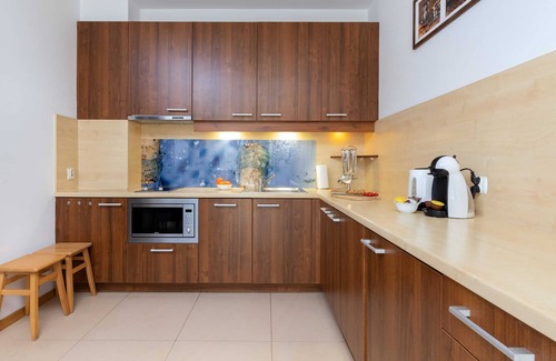 This cosy apartment with terrace at Villa 4 Pory Roku can accommodate up to 4 people - it will be perfect for a trip with family or friends! The apartment consists of a living area with a kitchenette, a bedroom and a bathroom with a shower. Tasteful arrangement of the interior in warm shades with the use of wooden elements of the decor and comprehensive equipment guarantee an unforgettable stay. The apartment also has a convenient exit to the terrace, which allows to relax outdoors. Guests can park the car in the underground garage, which is an advantage especially in the tourist season.