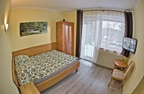 Willa Izery enjoys a location in Szklarska Poręba, a 6-minute walk from Szklarska Poreba Bus Station and 0.8 miles from Izerska Railway. This villa provides free private parking, a shared kitchen, and free Wifi. Szklarki Waterfall is 1.8 miles away, and Kamienczyka Waterfall is 1.8 miles from the villa. The villa complex features certain units with mountain views, and units come with a kettle. At the villa complex, all units are fitted with bed linen and towels. Guests at the villa will be able to enjoy activities in and around Szklarska Poręba, like skiing and walking tours. Dinopark is 1.9 miles from Willa Izery, while Death Turn is 2.7 miles away. Copernicus Wrocław Airport is 75 miles from the property.