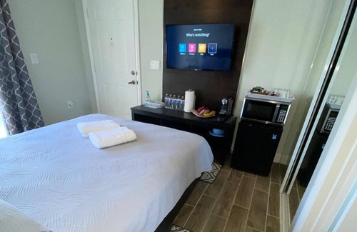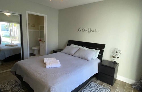 Nice guest suite with all the amenities. Perfect for two people, completely private with WiFi, TV, Refrigerator, one full bath, and one parking spot available. Enjoy our beautiful sunset by the lake.