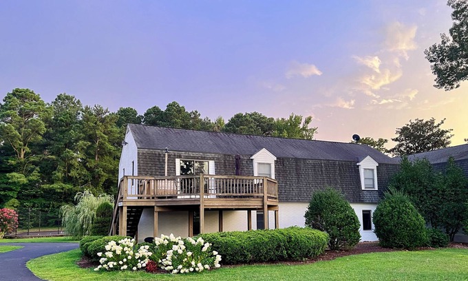 Sitting on the point of the Piankatank River, the private guest house is a spacious family-friendly living space with access to a tennis court and multiple areas to soak in the serene river views. It is a great place to bring paddleboards and kayaks. The house is a short drive to the quaint towns of Gloucester, Irvington, Deltaville & Urbanna with good restaurants and shopping. Come with the family or on a couples getaway trip to enjoy the river and explore the beautiful Chesapeake Bay.