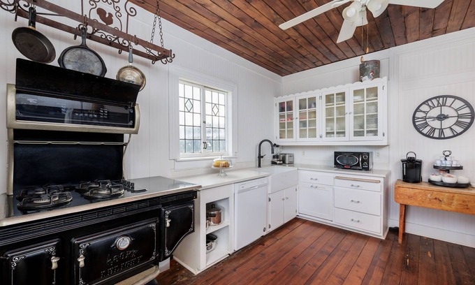 As you step onto the spacious front porch, the gentle swing invites you to sit back and enjoy the calm surroundings. Inside, the home is bright and airy, with high ceilings, polished hardwood floors, and stylish, comfortable furnishings that make you feel right at home. With 3 bedrooms and 2 full bathrooms, the 1905 Greathouse can comfortably accommodate up to 10 guests, making it perfect for families or groups of friends. The living areas are filled with natural light, ideal for unwinding or spending quality time together. The bedrooms are cozy and inviting, while the bathrooms feature modern fixtures with a classic touch.