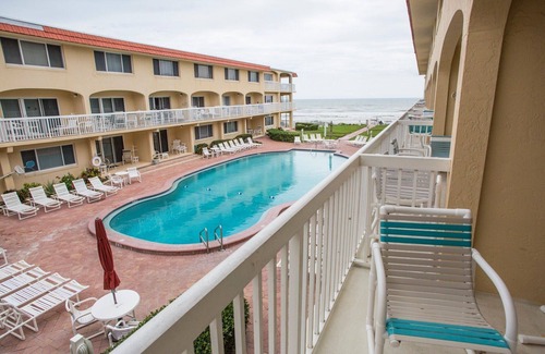 A-208 located on the 2nd floor and is a 2 story unit with an pool view balcony. It has a king size bed in the master, full & twin size beds in the guest room and a queen sleeper sofa in the living room offering plenty of sleep space for everyone! 2 full baths and a fully equipped kitchen, you will find everything you need! Eat in or walk down Flagler Ave and enjoy some of New Smyrna's excellent restaurants.