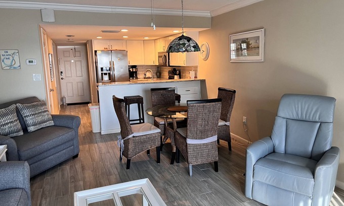 The fully equipped kitchen makes dining in easy, or take a short stroll down Flagler Ave to enjoy some of the area's best local cuisine. With two full bathrooms, there's plenty of space for everyone to refresh after a day at the beach or by the pool.